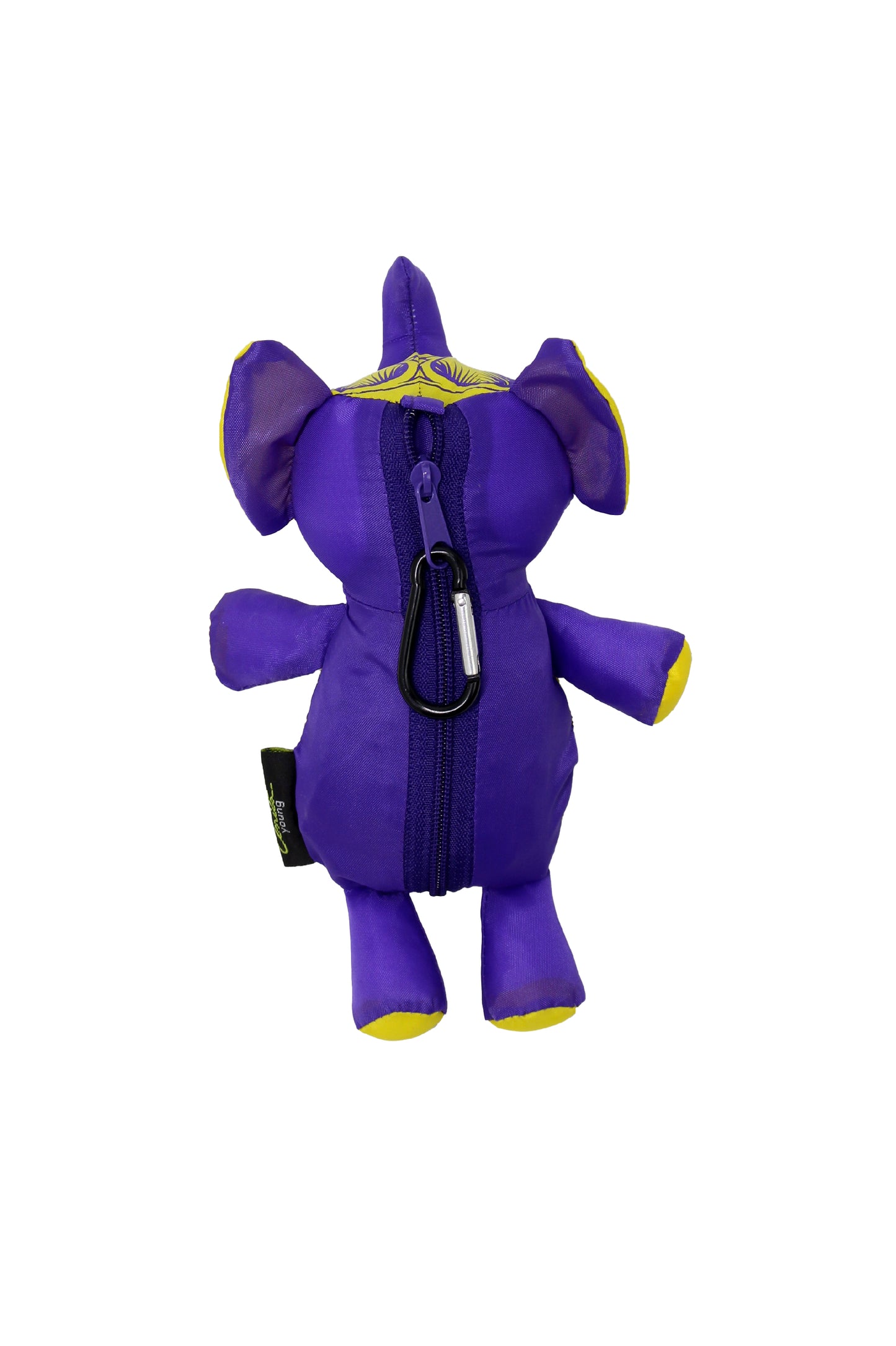 - Tote bag is easily folded up and stored into a unique Elephant doll.