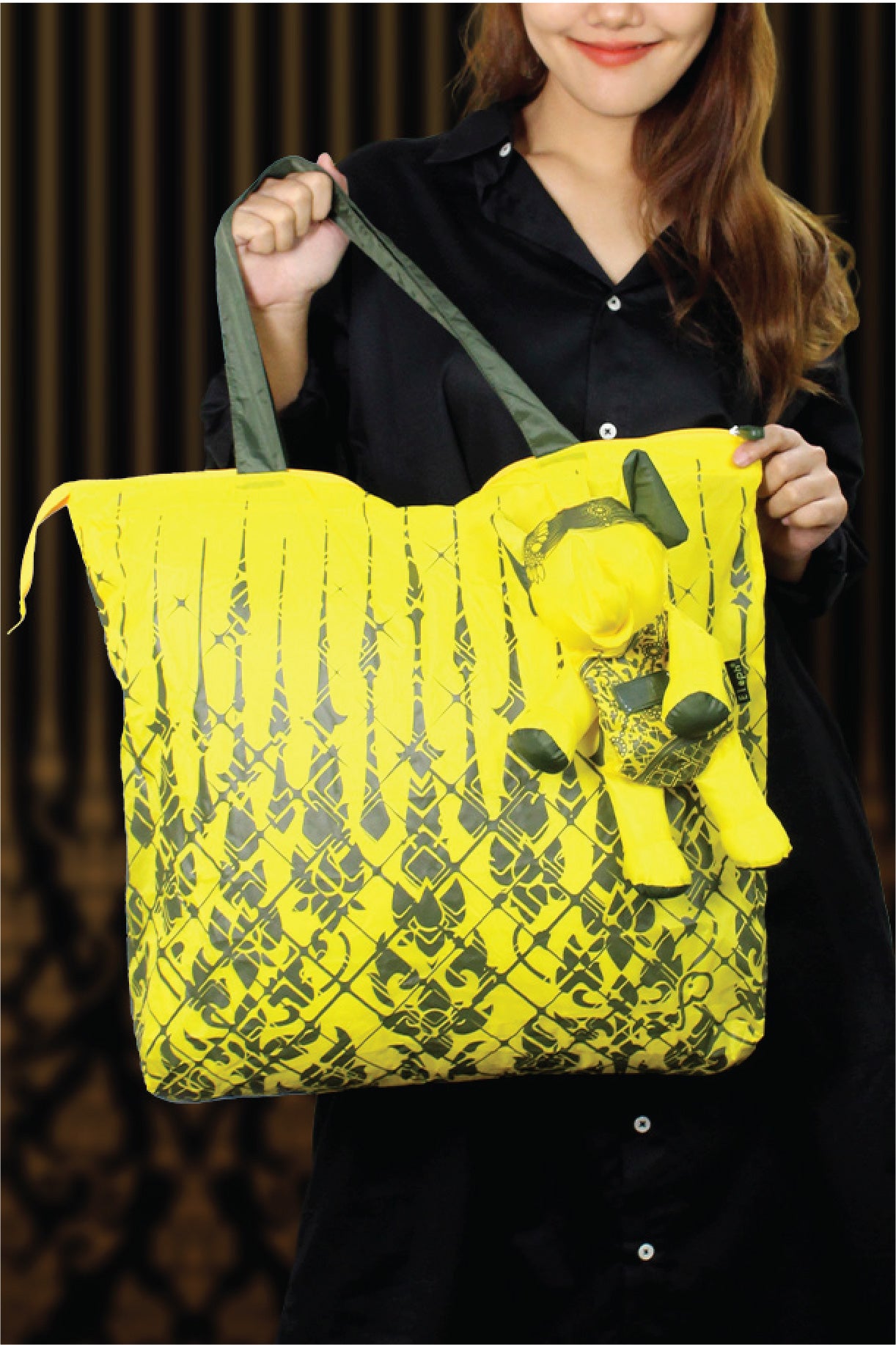 - Bag is easily folded up and stored into a unique Elephant doll.